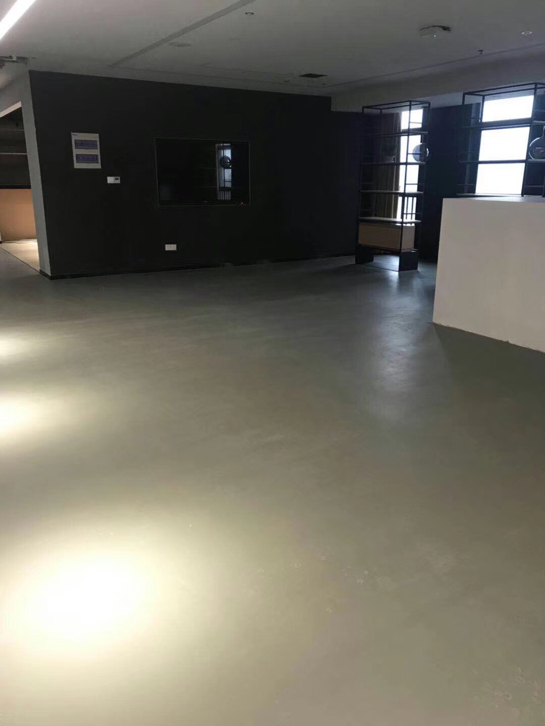 1. 除塵2. 水性環氧底漆3. 水泥自流平 4. 水性聚氨酯透明罩面